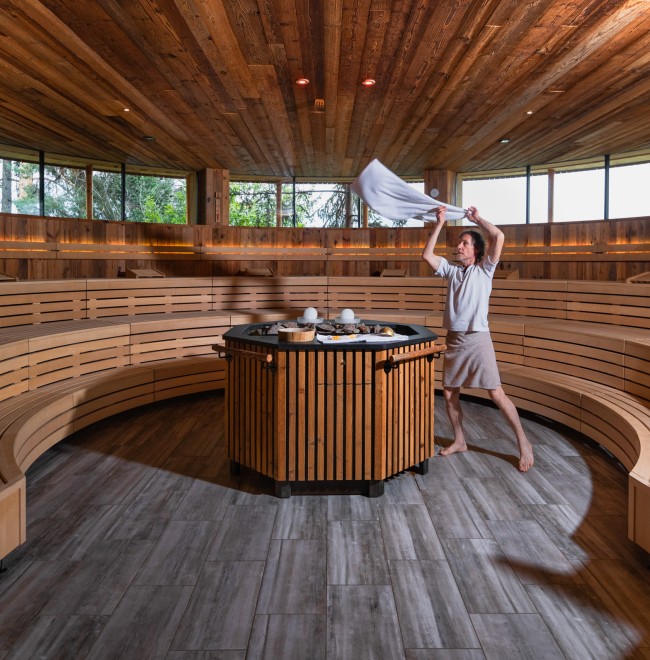 Experience the healthy effects of a good sweat, a practice cherished by the Finns and at the Waldhof². Explore our six unique sauna experiences, including the dry steam bath infused with mountain herbs, the panoramic bio sauna with stunning views, the traditional Finnish sauna featuring old wood, the intimate infrared cabin for two, and the saltwater steam bath. Our Finnish forest sauna offers daily event infusions to enhance your sauna experience. Afterwards, relax in our cosy areas with independent magazines and curated tunes from our Spotify playlists.